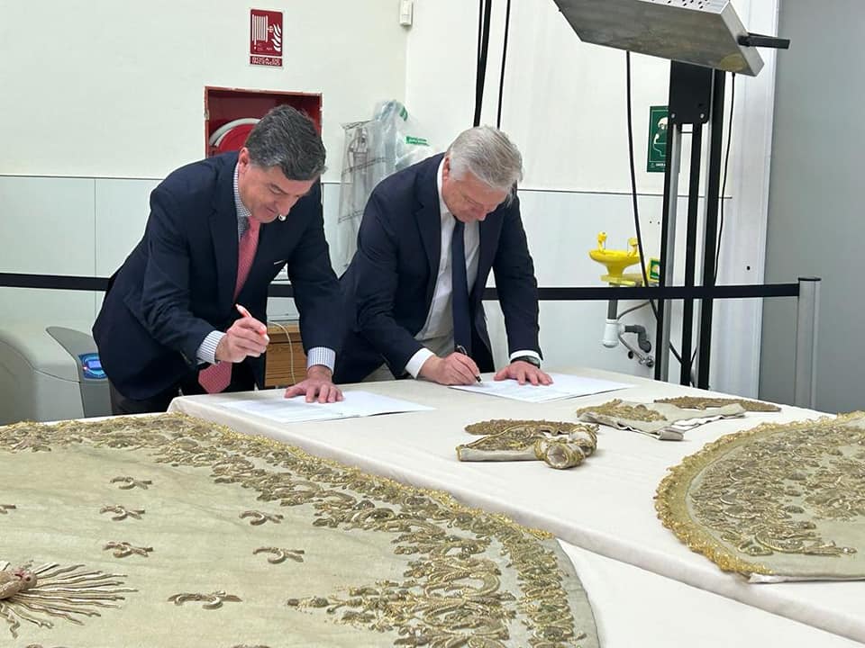 Seguimos trabajando por el mantenimiento, conservación y recuperación del patrimonio histórico-artístico de la Santísima Virgen que administra la Hermandad Matriz. Hoy hemos depositado el conjunto textil de los Montpensier, que en los próximos nueve meses recuperará su esplendor. El conjunto textil que, además de su valor artístico, atesora el mayor valor histórico (último cuarto del siglo XIX), de los conjuntos que posee la Santísima Virgen y un gran valor emocional y sentimental. Mi gratitud , una vez más, a Victoriano Camacho Martínez y su familia, que son los que sufragan el coste de estos trabajos en el IAPH.