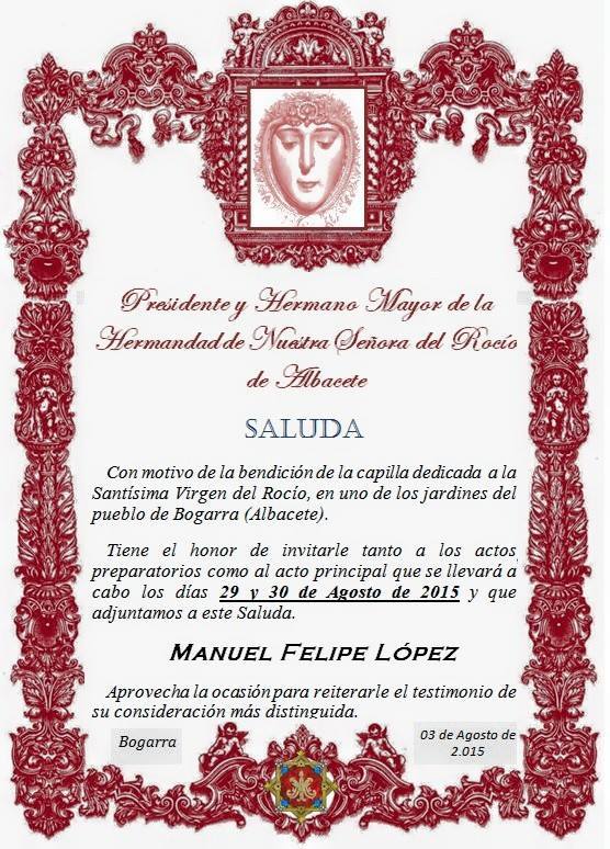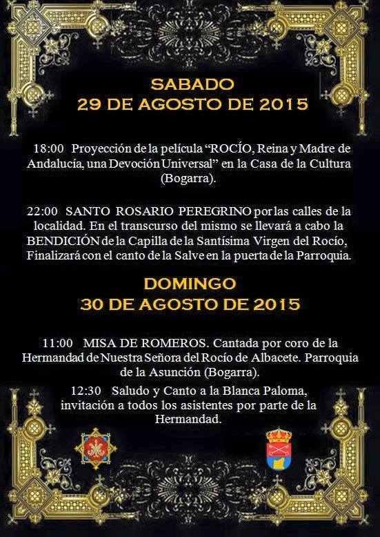 La Hermandad de Albacete organiza unos Actos con motivo de la bendición de la capilla de la Virgen del Rocío en Bogarra.