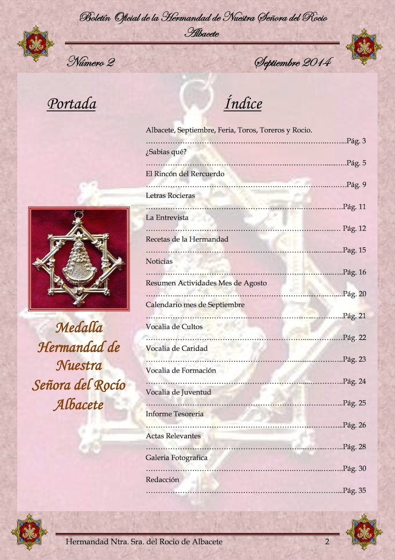 Boletín correspondiente al mes de Septiembre de 2014 de nuestra Hermandad.