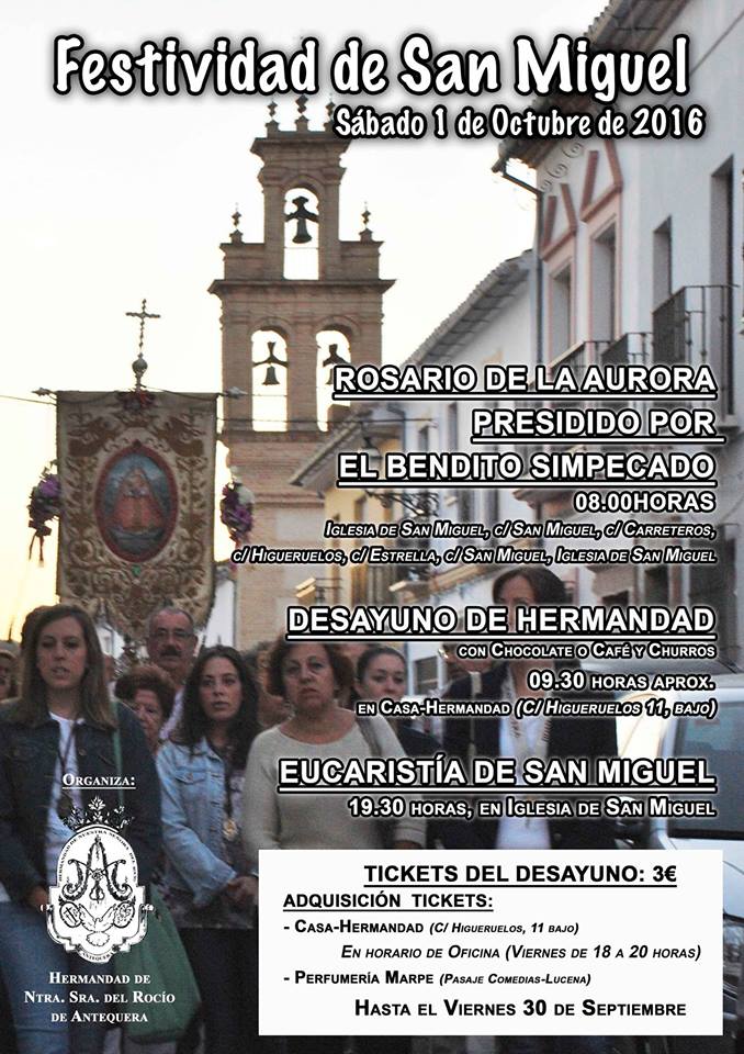 La Hermandad de Antequera organiza un Rosario de la Aurora por la Festividad de San Miguel el 1 de octubre de 2016