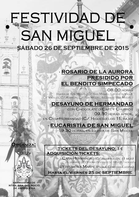 Hermandad de Antequera celebra el Rosario de la Aurora y Eucaristía en la Festividad de San Miguel el día 26 de septiembre de 2015.