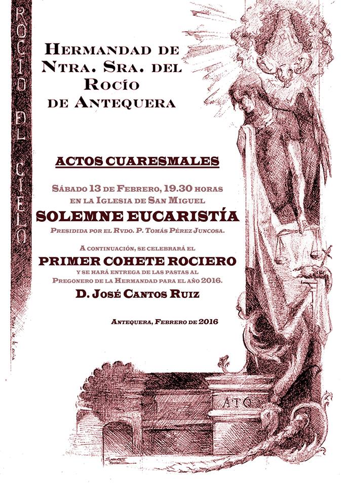 La Hermandad de Antequera celebra Solemne Eucaristía y 1º Cohete Rociero el 13 de febrero de 2016.