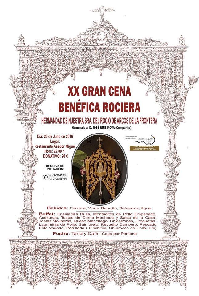 La Hermandad de Arcos de la Frontera celebra su XX Gran Cena Rociera el próximo 23 de julio de 2016