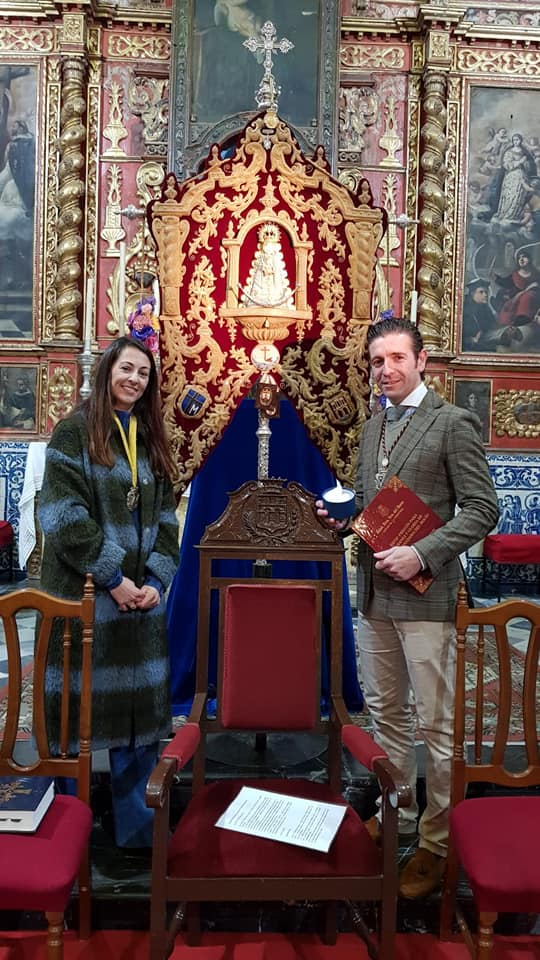 Ya presentado el pregonero del XXVII Pregón de las Glorias y Alabanzas de María Santísima del Rocío. La Hermana Mayor de la Hermandad, Isabel Vallejo, hizo entrega a José Raúl Zarzuela Delgado de las pastas para guardar las hojas de su pregón y un pañuelo que ha llevado nuestra titular desde la pasada Romería de Pentecostés. El pregón tendrá lugar el próximo 18 de mayo.