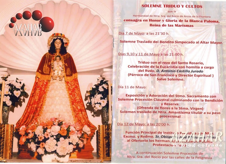 La Hdad. de Arcos celebra su último dia del Triduo en honor a Ntra. Sra. Mañana día 12 celebrará la Función Principal de Instituto.