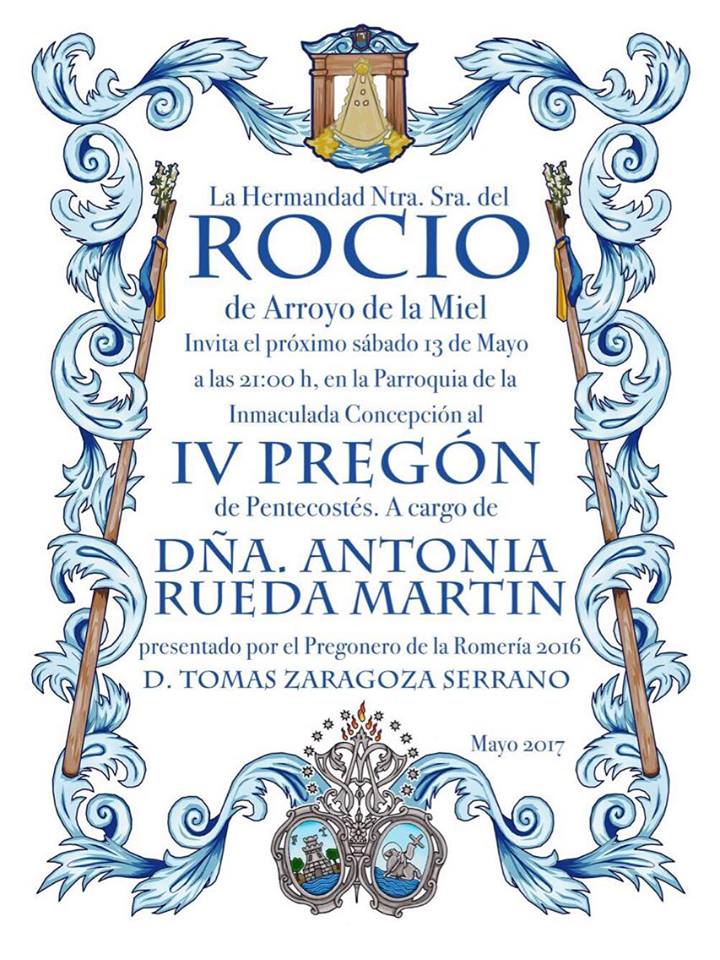 Hermandad de Arroyo de la Miel – IV Pregón del Rocío 2017 a cargo de Doña Antonia Rueda Martín