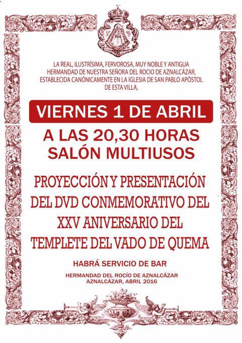 La Hermandad de Aznalcazar organiza una Proyección del DVD XXV Aniversario Templete Vado de Quema.