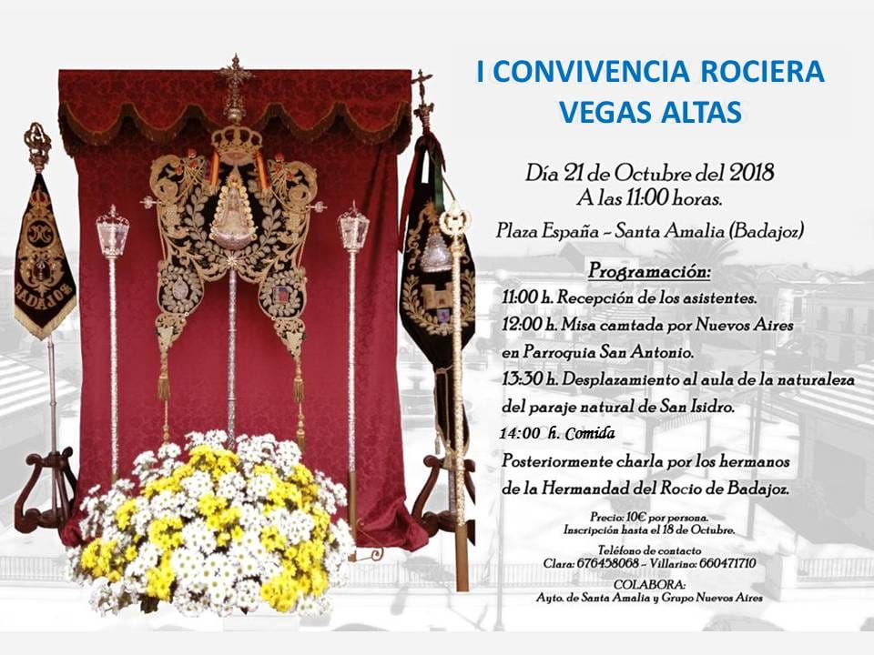 La Hermandad de Ntra. Sra. del Rocío de Badajoz va a celebrar el I Encuentro y Convivencia Rociera con los hermanos y devotos de Ntra. Sra. del Rocío residentes en la zona de las Vegas Altas de la provincia de Badajoz, el día 21 de octubre de 2018.