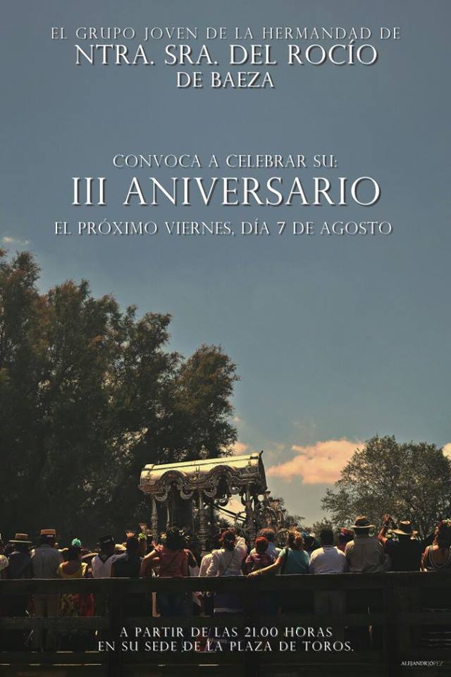 La Hermandad de Baeza celebra el III Aniversario Grupo Joven el viernes 7 de agosto de 2015.