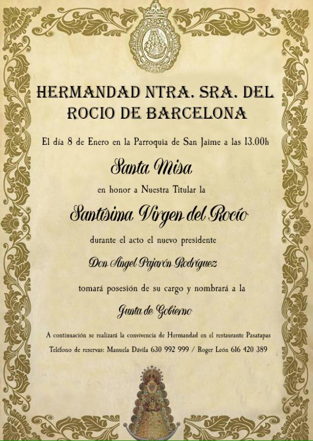 La Hermandad de Barcelona celebra Santa Misa y Toma de Posesión del Nuevo Presidente el 8 de enero de 2017