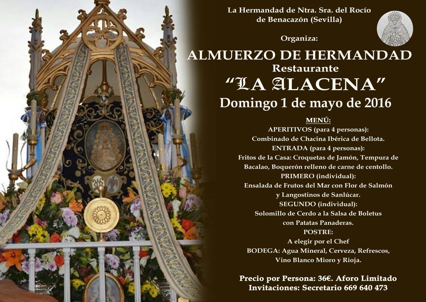 La Hermandad de Benacazón organiza un Almuerzo de Hermandad el día 1 de mayo de 2016.