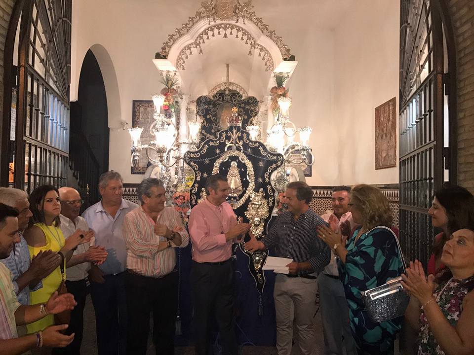 El Presidente, los Hermanos Mayores y la Junta de Gobierno quiere comunicar que el dia 5 de agosto, después de la presentación a Nuestra Patrona en la Casa Hermandad delante de nuestro Venerado Simpecado, tuvo el honor de comunicar y notificar el Pregonero de la Exaltación de la Hdad. para el año 2018, el cual recayó en nuestro Hermano D. Feliciano Perejón Ortega, persona muy vinculada a nuestra Institución y la cual nos deleita cada año con sus sones de gaita y tamboril.