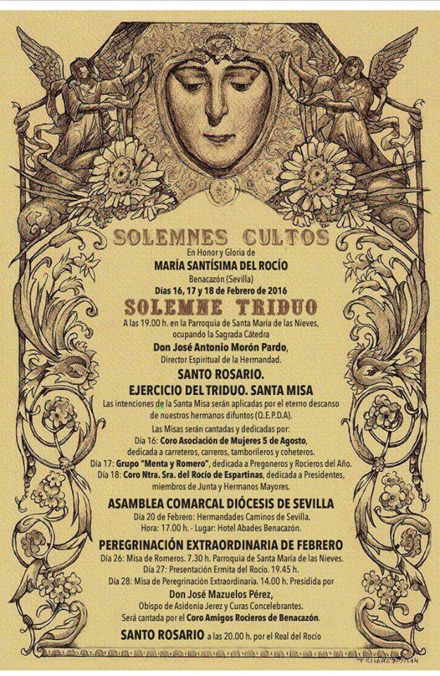 La Hermandad de Benacazón celebra Solemne Triduo los días 16,17 y 18 de febrero de 2016.