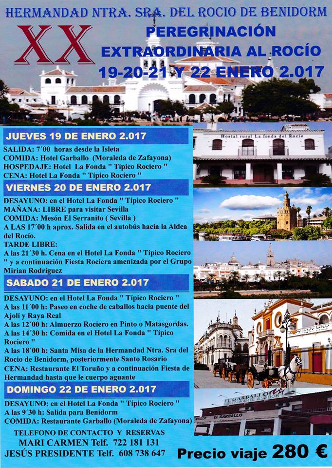 La Hermandad de Benidorm organiza su Peregrinación Extraordinaria al Rocío para los días 19 al 22 de enero de 2017