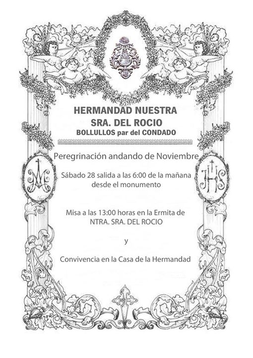 La Hermandad de Bollullos organiza su Peregrinación andando al Rocío noviembre 2015.