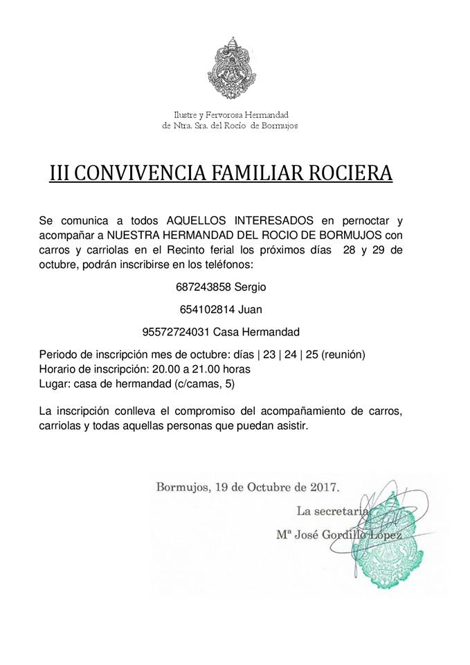 La Hermandad de Bormujos organiza una Convivencia Rociera para los días 28 y 29 de octubre.