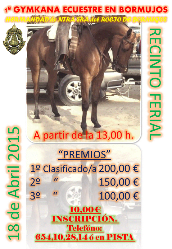 El próximo día 18 de abril la Hermandad de Ntra. Sra. del Rocío de Bormujos organiza la primera Gymkana Ecuestre.