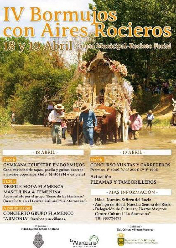 La Hermandad de Ntra Sra del Rocío de Bormujos organiza la IV EDICION CON » AIRES ROCIEROS » de Bormujos los próximos días 18 y 19 de abril en el recinto ferial; CASETA MUNICIPAL.