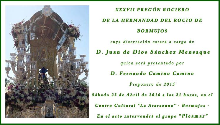 La Hermandad de Bormujos celebra su Pregón del Rocío 2016 a cargo de Juan de Dios Sánchez Mensaque