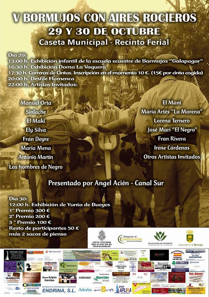 La Hermandad de Ntra Sra del Rocío de Bormujos celebrará los próximos 29 y 30 de octubre el «V BORMUJOS CON AIRES ROCIEROS» en el Real de la Feria y la Caseta Municipal de Bormujos.