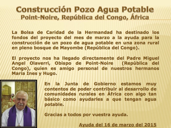 Tengo el placer de comunicaros que gracias a vuestra generosidad, este mes hemos podido ayudar a la futura construcción de un pozo de agua potable en una pequeña comunidad rural en el bosque de Mayombe, en la República del Congo .
