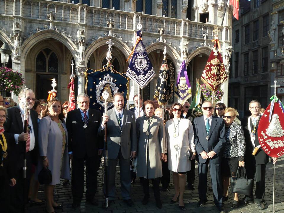 Procesión rociera por la Grand Place y callejas de Bruselas en su camino a la Catedral