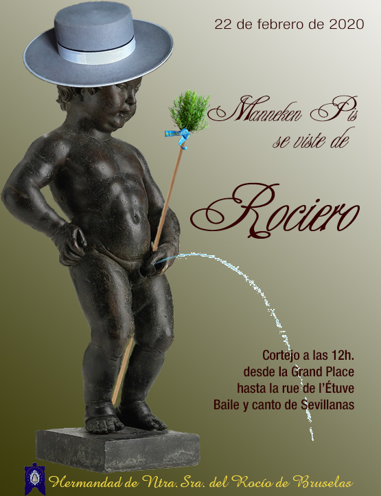 El sábado 22 de febrero la Hermandad del Rocío de Bruselas regalará al Manneken-Pis un traje corto, traje típico de hombre andaluz, que será el número 1.043 del ajuar del «niñito meón».