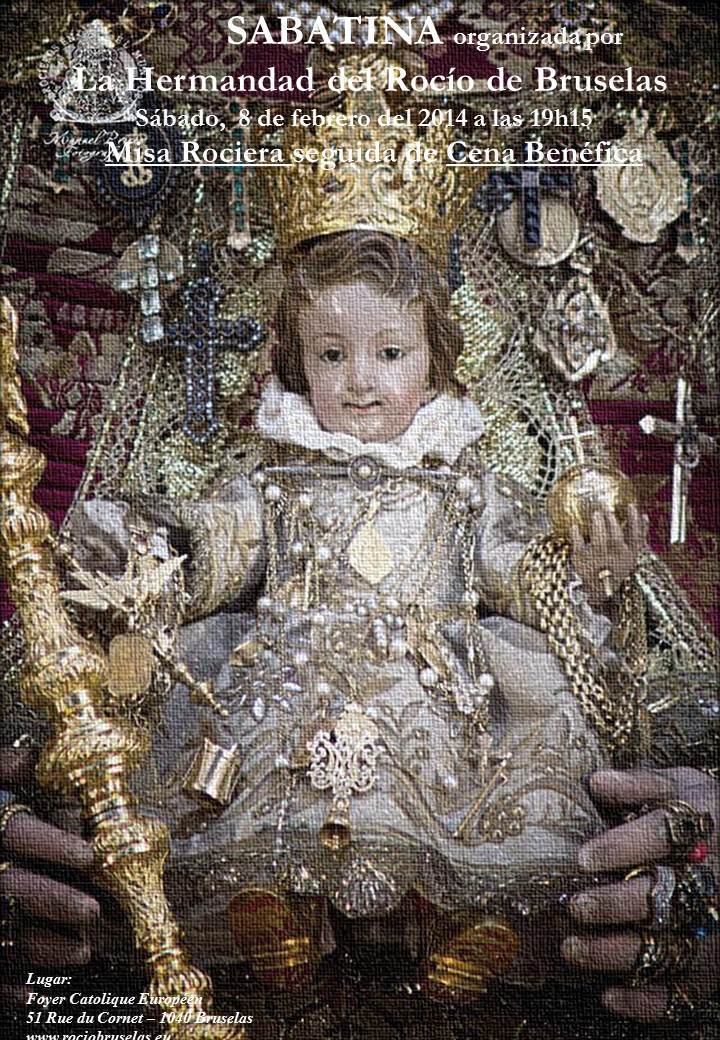 Ya pasada la famosa "cuesta de enero" con la celebración de la Sabatina de la semana pasada, ya estamos preparando la siguiente Misa Rociera y Cena Benéfica que tendrá lugar el Sábado, 8 de febrero a las 19h15, como siempre en su sede del Hogar Católico Europeo (51, rue du Cornet, 1040 Bruselas).