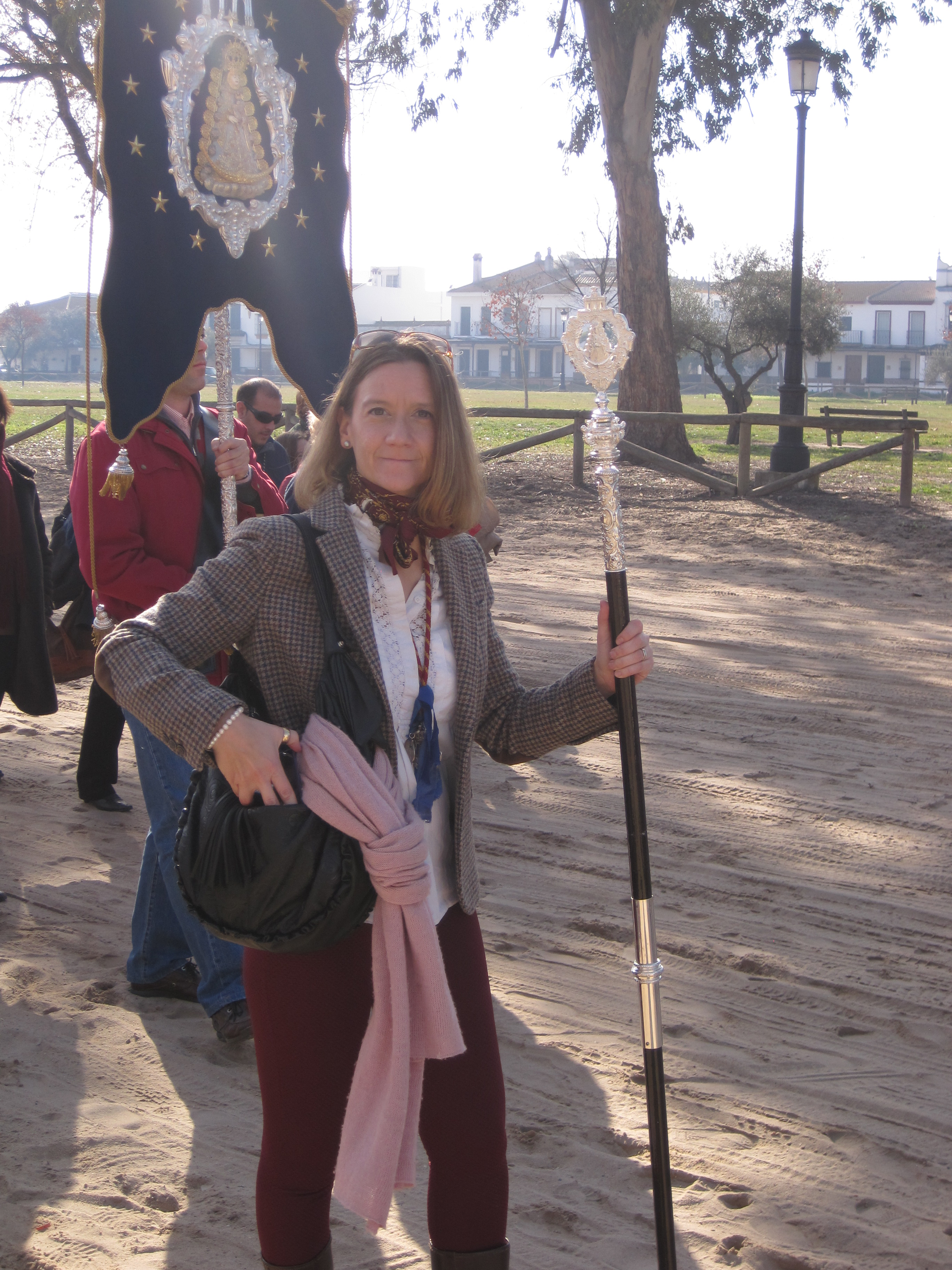 Y llegó el momento tan esperado: a eso de las 12 del mediodía la Hermandad de Bruselas iniciaba su procesión hacia la Ermita. Con el Simpecado luciendo bellísimo gracias a los cuidados de nuestro querido Prioste Cecilio y nuestra estupenda Tesorera Rosi, y con un regalo muy especial que nos hizo Mauri. Desde esta Peregrinación el Simpecado de Bruselas lleva una segunda medalla de la Hermandad Matriz de Almonte: la medalla de Fele, madre de Mauri, que este año se reunió con la Divina Pastora en las marismas eternas. Tener esa medalla es algo muy especial, por lo que significó Fele para la Hermandad mucho antes de que fuera Hermandad… Gracias de todo corazón, Mauri, por darnos esa medalla que tanto significa para ti y para nosotros.