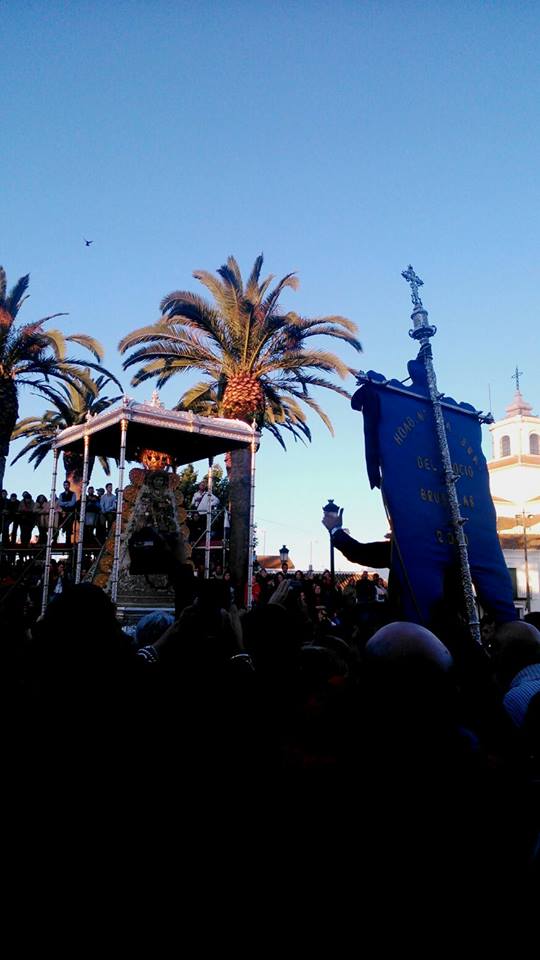 El Simpecado de Bruselas ante la Virgen en la pasada Romería 2016
