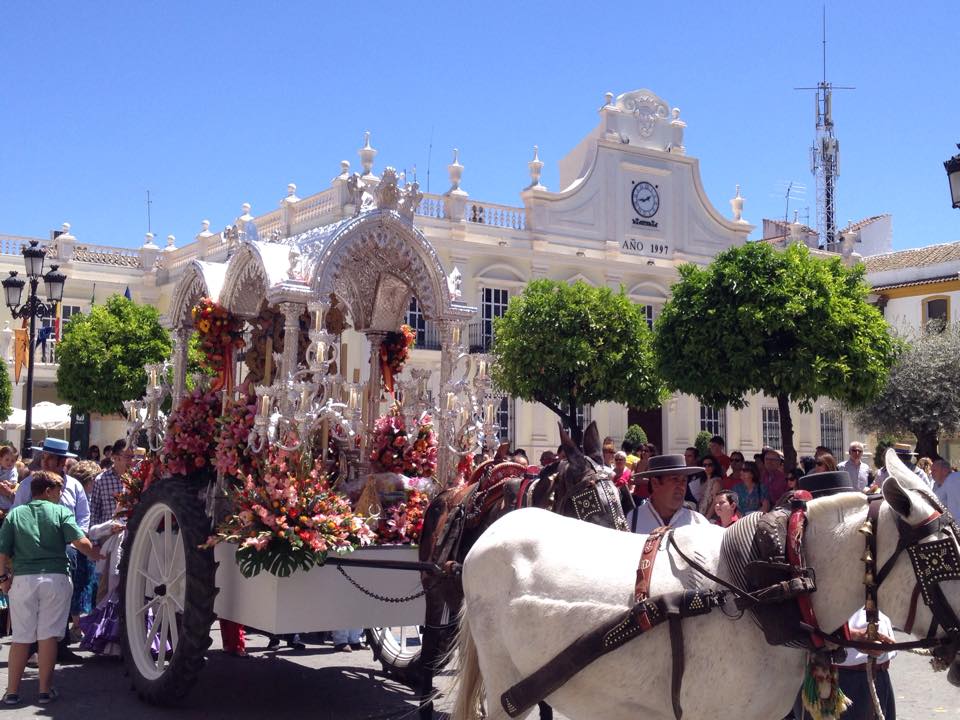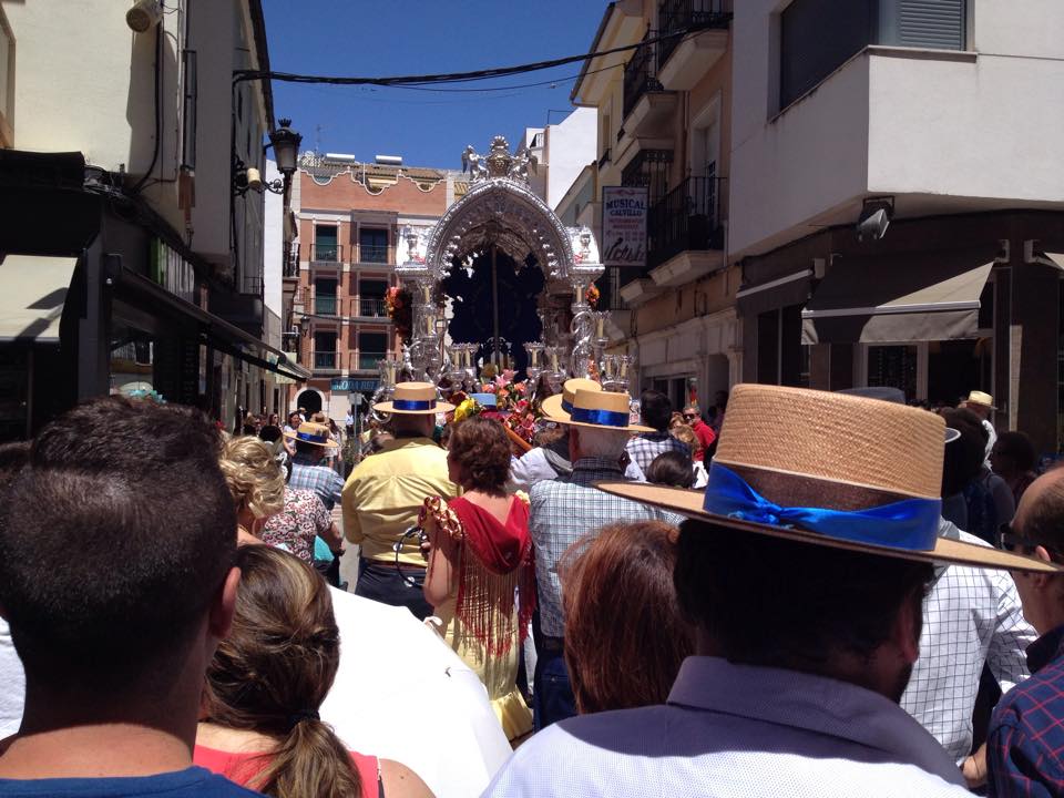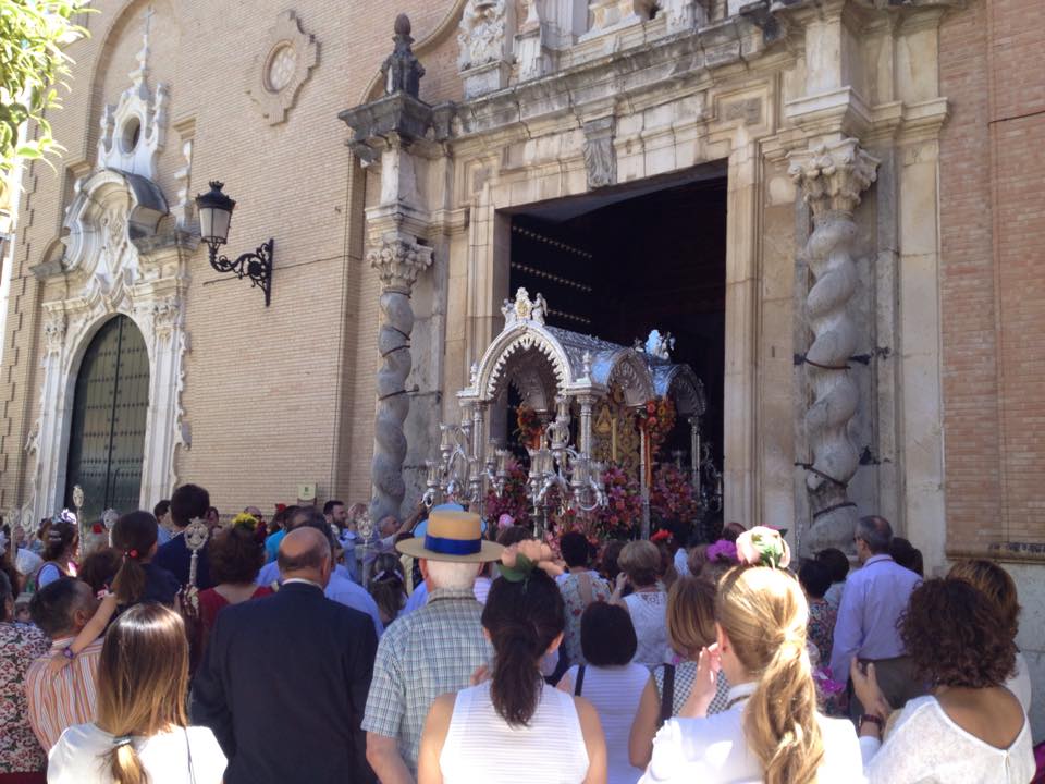 La Hdad. de Cabra tras celebrar su Misa de Romero a las 12:00 horas en la Parroquia de S. Domingo de Guzmán inicia su camino hacia la Blanca Paloma.