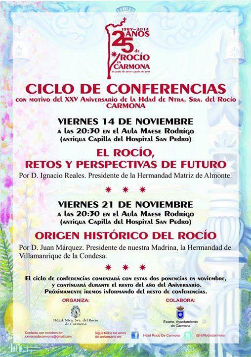 La Hermandad de Carmona organiza un Ciclo Conferencias con motivo del XXV aniversario de la Hermandad.