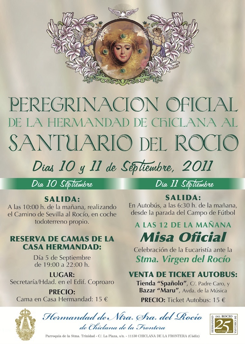 Peregrinación Oficial de la Hdad. de Chiclana los días 10 y 11 de septiembre.