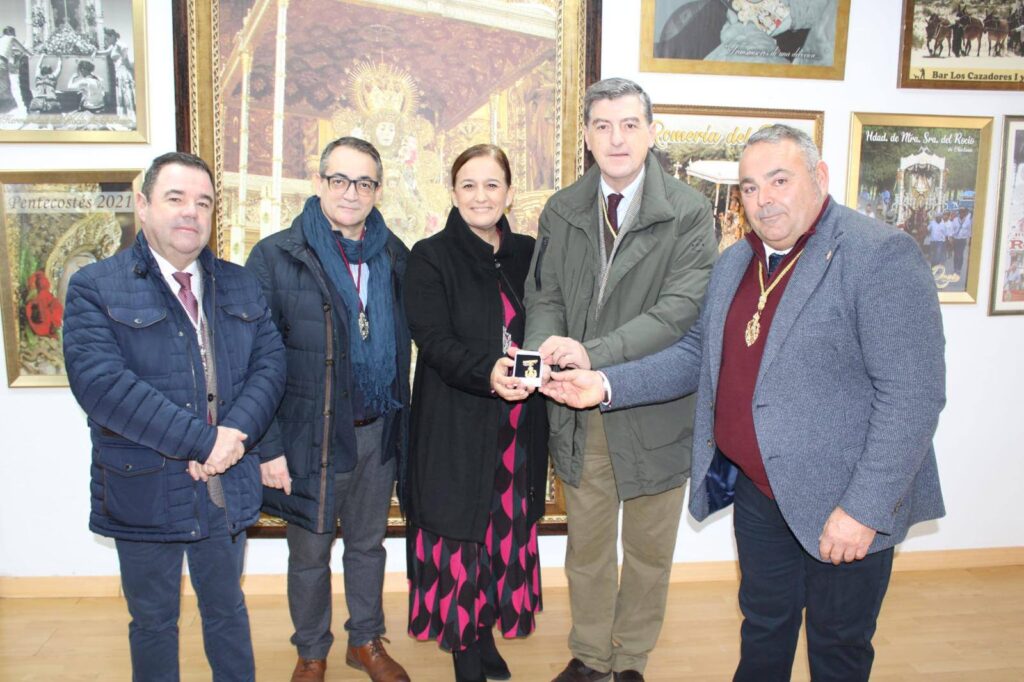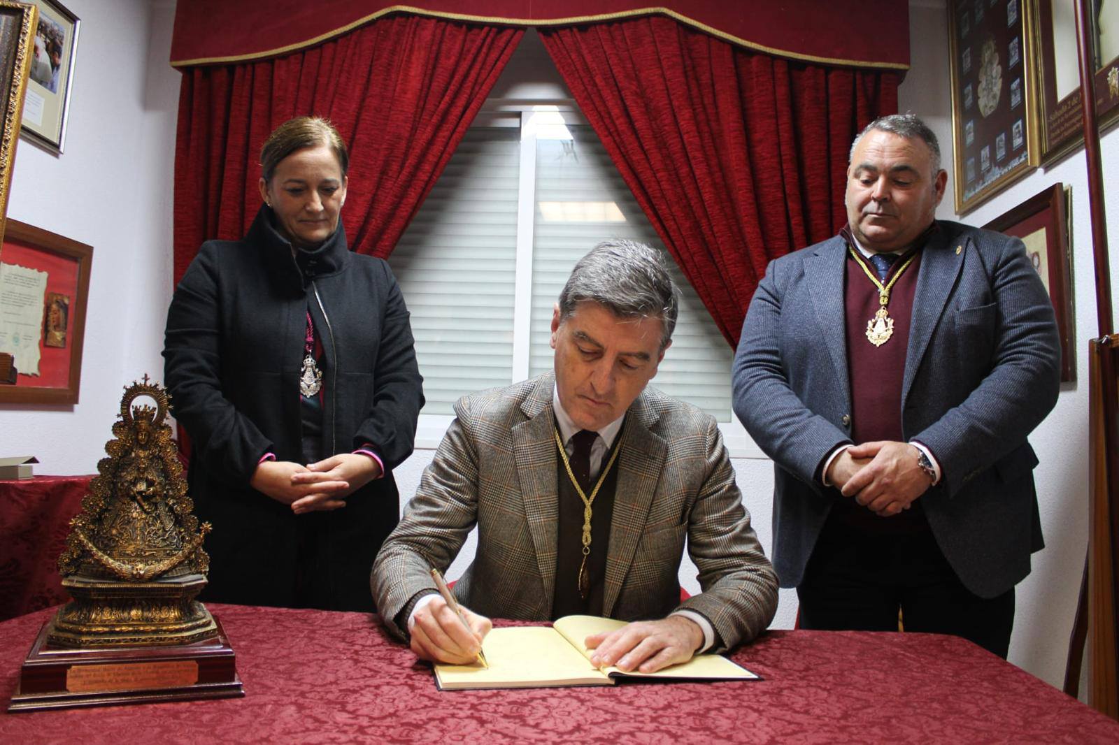 Hoy hemos tenido el honor de recibir la visita del 𝒑𝒓𝒆𝒔𝒊𝒅𝒆𝒏𝒕𝒆 𝒅𝒆 𝒍𝒂 𝑯𝒆𝒓𝒎𝒂𝒏𝒅𝒂𝒅 𝑴𝒂𝒕𝒓𝒊𝒛 𝒅𝒆 𝑨𝒍𝒎𝒐𝒏𝒕𝒆, Santiago Padilla, con motivo de la toma de posesión recientemente de la Junta de Gobierno de nuestra Hermandad. Durante el encuentro, ha firmado en el Libro de Honor y, como muestra de cariño y devoción, le hicimos entrega de un broche para Nuestra Bendita Madre, la Virgen del Rocío.