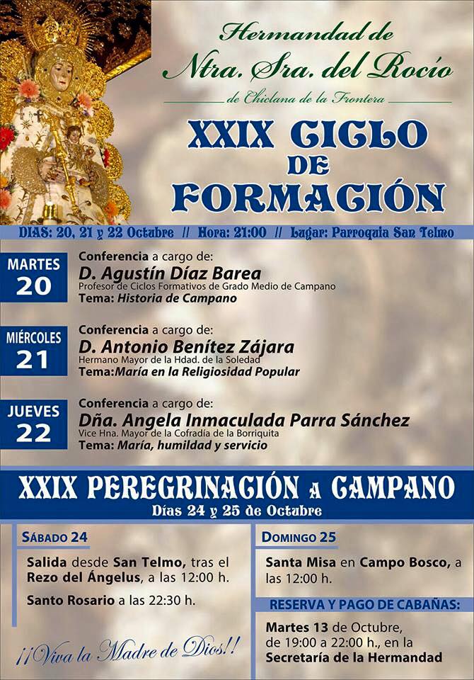 La Hermandad de Chiclana organiza el XXIX Ciclo de Formación los días 20,21 y 22 de octubre de 2015.