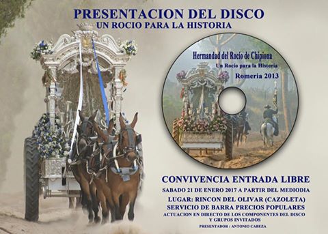 El pasado 21 de enero se presentó el disco «Un Rocio para la Historia» en el Rincon del Olivar ( Cazoleta ) presentado por Antonio Cabezas.