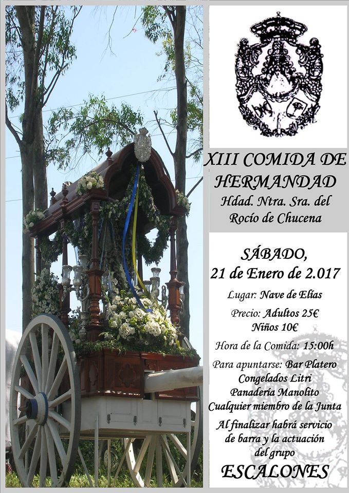 El próximo 21 de enero te esperamos en la Nave de Elías para compartir una jornada de convivencia y hermandad a las 15:00 horas. Al finalizar habrá servicio de barra y contaremos con la actuación del grupo ESCALONES.