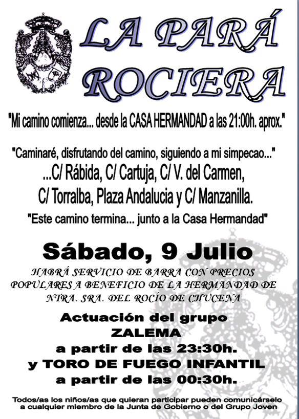 La Hermandad de Chucena organiza La Pará Rociera para el sábado 9 de julio de 2016