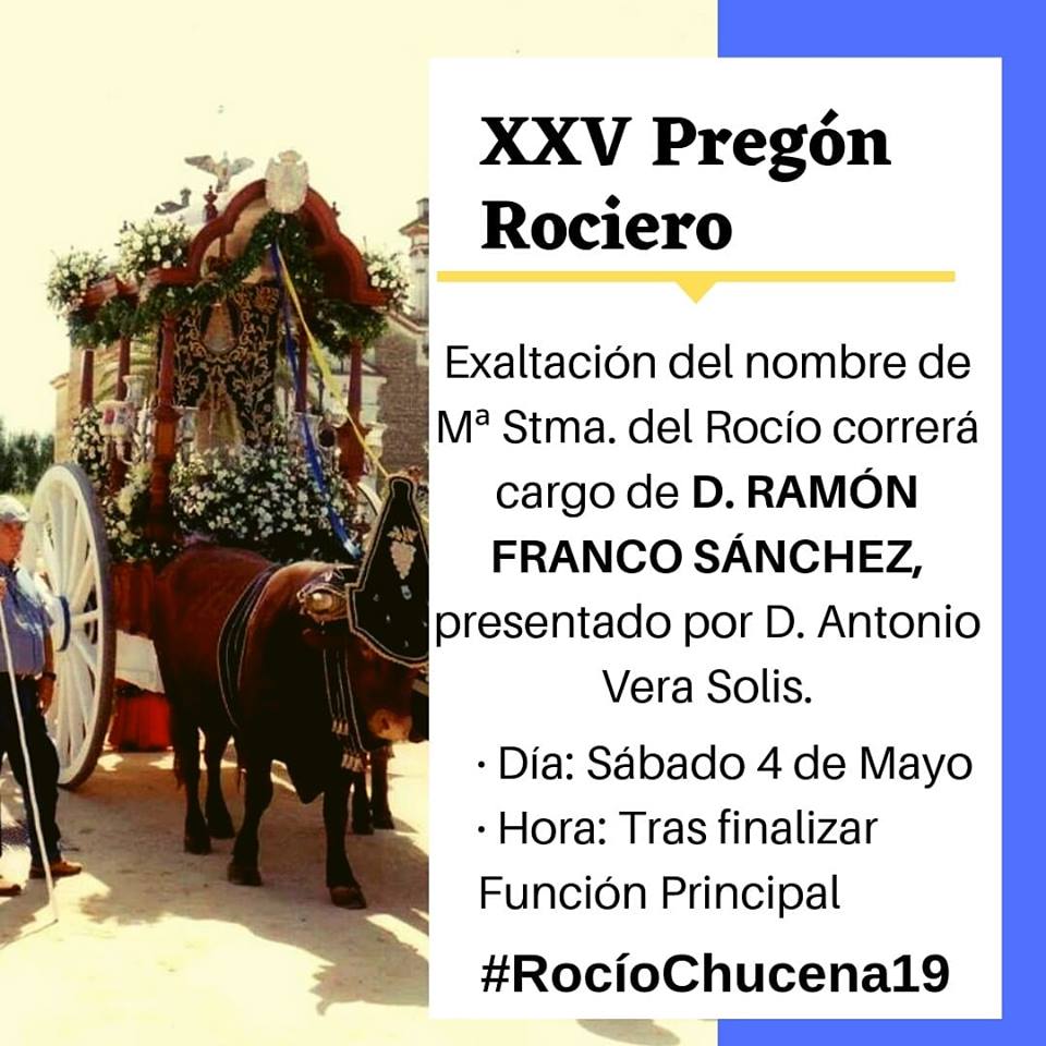 Hermandad de Chucena – XXV Pregón de la Romería del Rocío a cargo de D. Ramón Franco Sánchez.