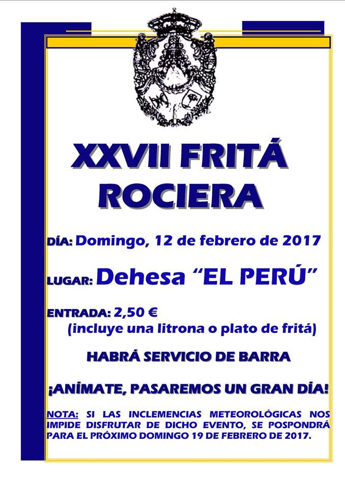 La Hermandad de Chucena organiza su XXVII Fritá Rociera el domingo 12 de febrero de 2017