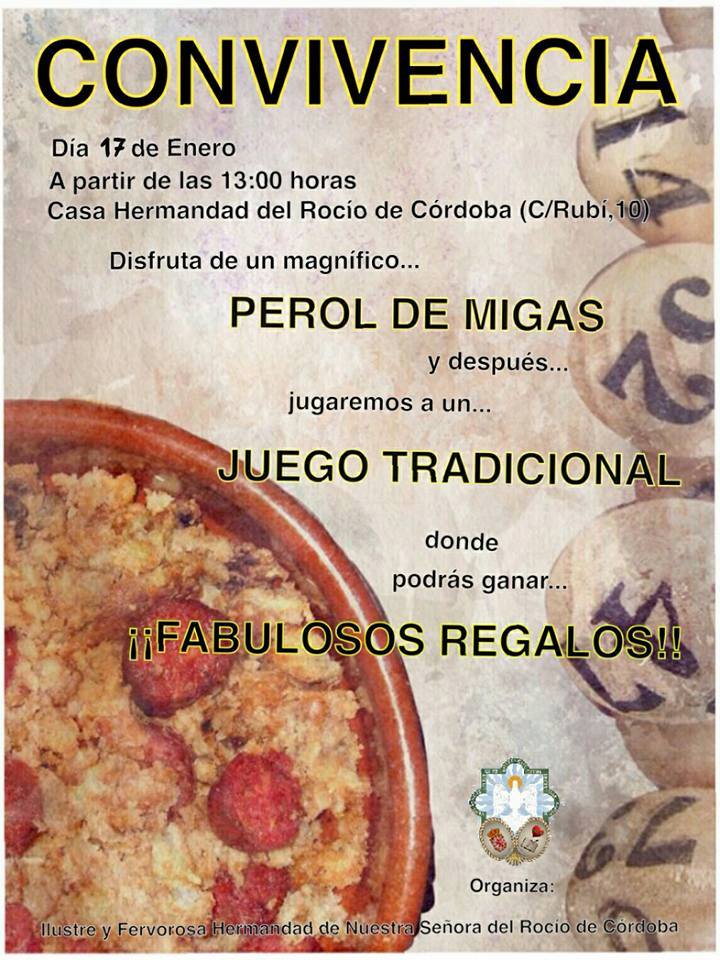 La Hermandad de Córdoba organiza una Convivencia para el domingo 17 de enero 2016.