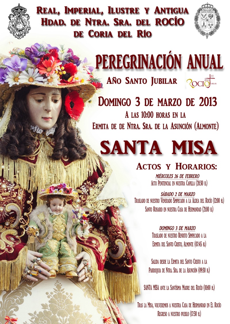 El próximo 3 de marzo tendrá lugar la Presentación de la Hdad. de Coria ante la Blanca Paloma en la parroquia de la Asunción de Almonte.