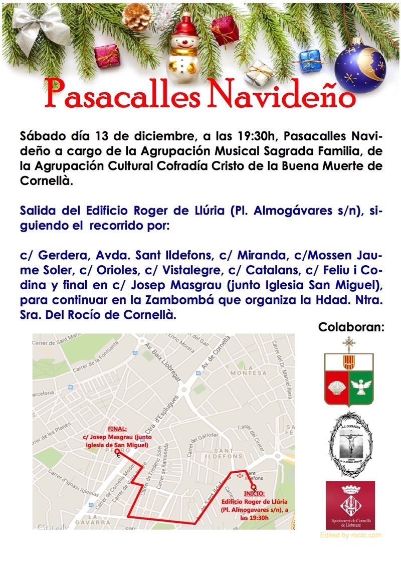 Entre los diversos actos, de este mes, resaltaremos nuestra III Zambombá. Esta se inicio seguidamente al primer pasacalles organizado por la Asociación Sagrada Familia y esa misma tarde se inauguró Nuestro pesebre.