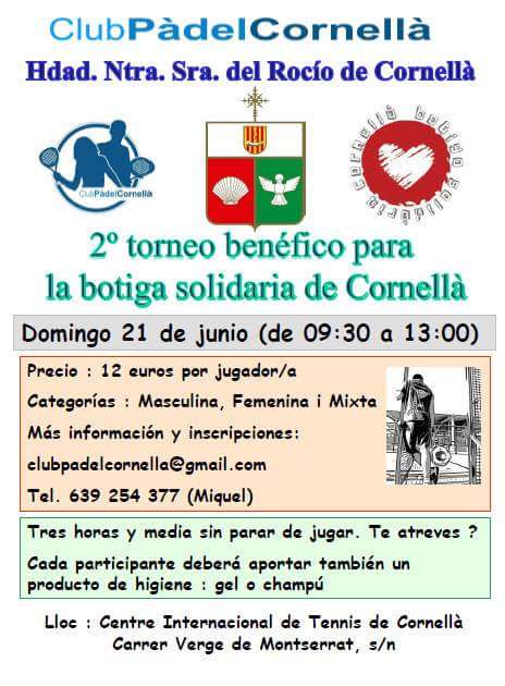 La Hermandad de Cornellá organiza el  II Torneo Benéfico de Pádel el domingo 21 de junio de 2015.