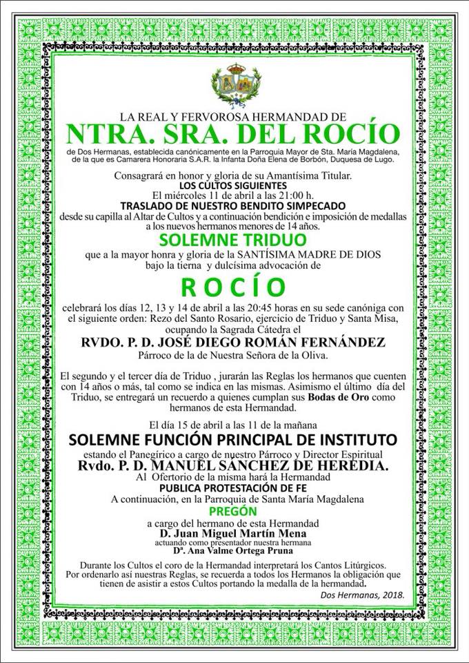 Hermandad de Dos Hermanas – Solemne Triduo y Pregón a cargo de d: Juan Miguel Martín Mena