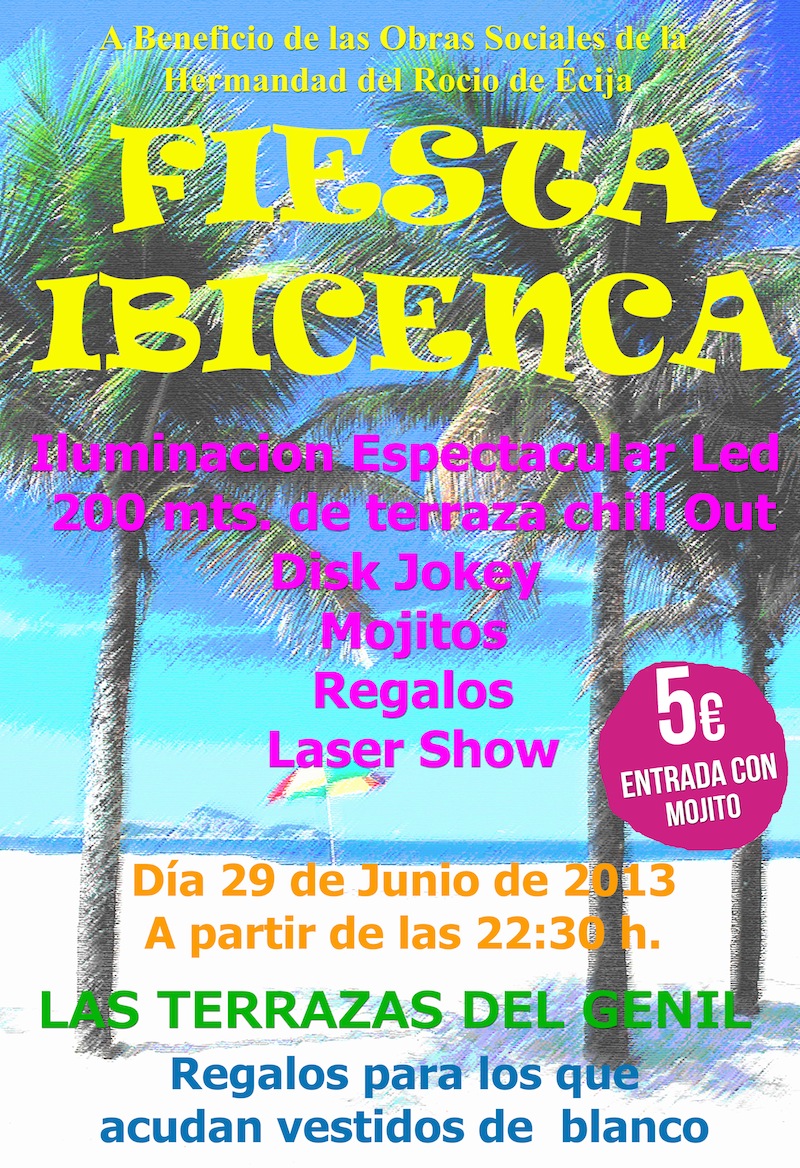La Hdad. de Écija organiza una Fiesta Ibicenca el próximo 29 de junio con el fin de recaudar fondos para las Obras Sociales que desarrollan durante todo el año.