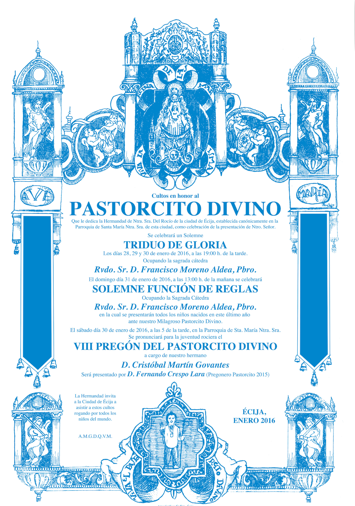 La Hermandad de Écija celebra Triduo de Gloria en Honor del Pastorcito los días 28,29 y 30 de enero de 2016