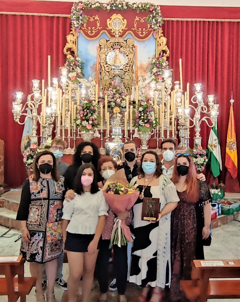 Terminado el acto el presidente de la junta de gobierno de la filial rociera agradeció a todos los presentes su asistencia, agradeciendo al grupo de mayordomía el trabajo constante que viene realizando durante todo el año, así como a las camaristas, con una especial dedicatoria a Francisca que recibió de manos del presidente de la Hermandad de Emigrantes, un reconocimiento a sus 50 años al servicio de la filial rociera. Siendo agasaja por toda su familia.