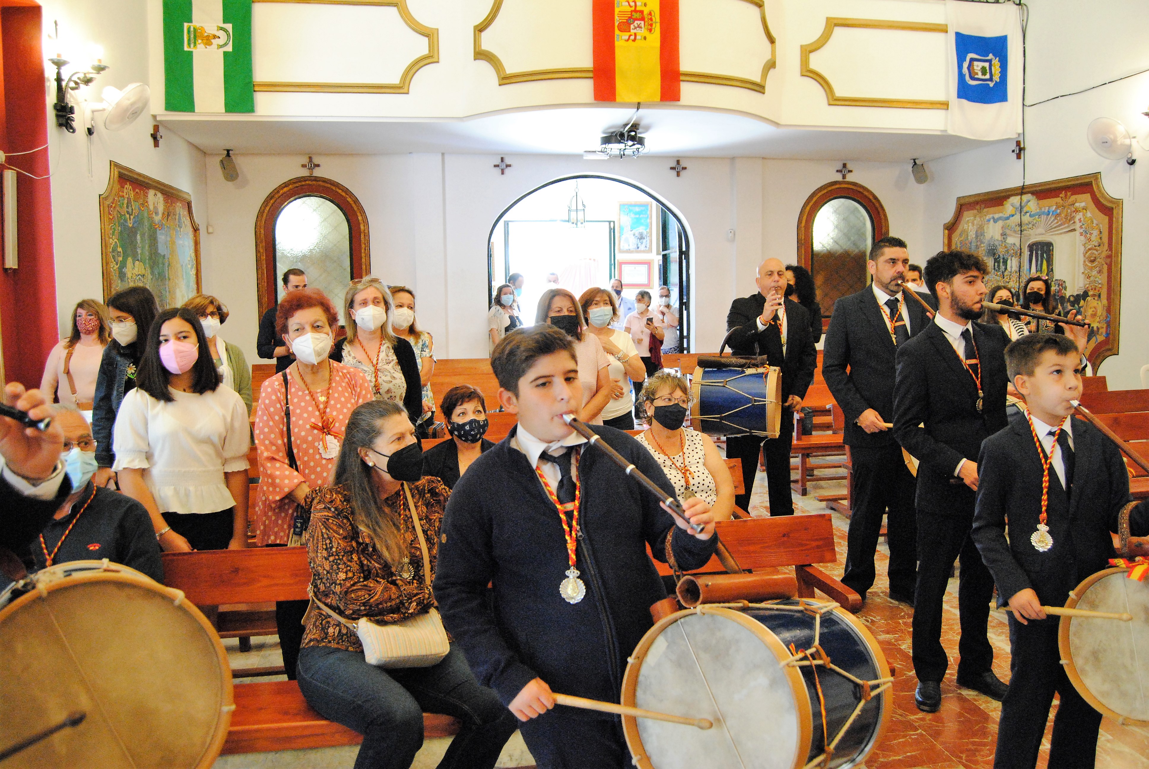 Tampoco podemos olvidar los toques de los tamborileros que, como vienen realizando diariamente, forman parte del alma de toda hermandad de la Virgen del Rocío.