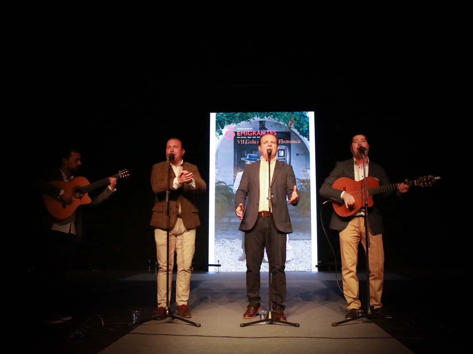 El grupo, formado por Diego, Manolo y Carlos, tres jóvenes onubenses, desplegó sobre el escenario sus grandes voces, haciendo sentir al público que son rocieros por los cuatro costados, y además hermanos de Emigrantes. En su actuación no quisieron dejar de recordar “al presidente eterno, Eduardo Fernando Jurado” y para ello cantaron una sevillana que les compuso. Durante todo el repertorio que ofrecieron demostraron que cantan y tocan “por derecho” como se hace en Huelva, con elegancia y gusto, sabiendo transmitir lo que interpretan y, sobre todo, ganándose el cariño de todo el público asistente a la gala.